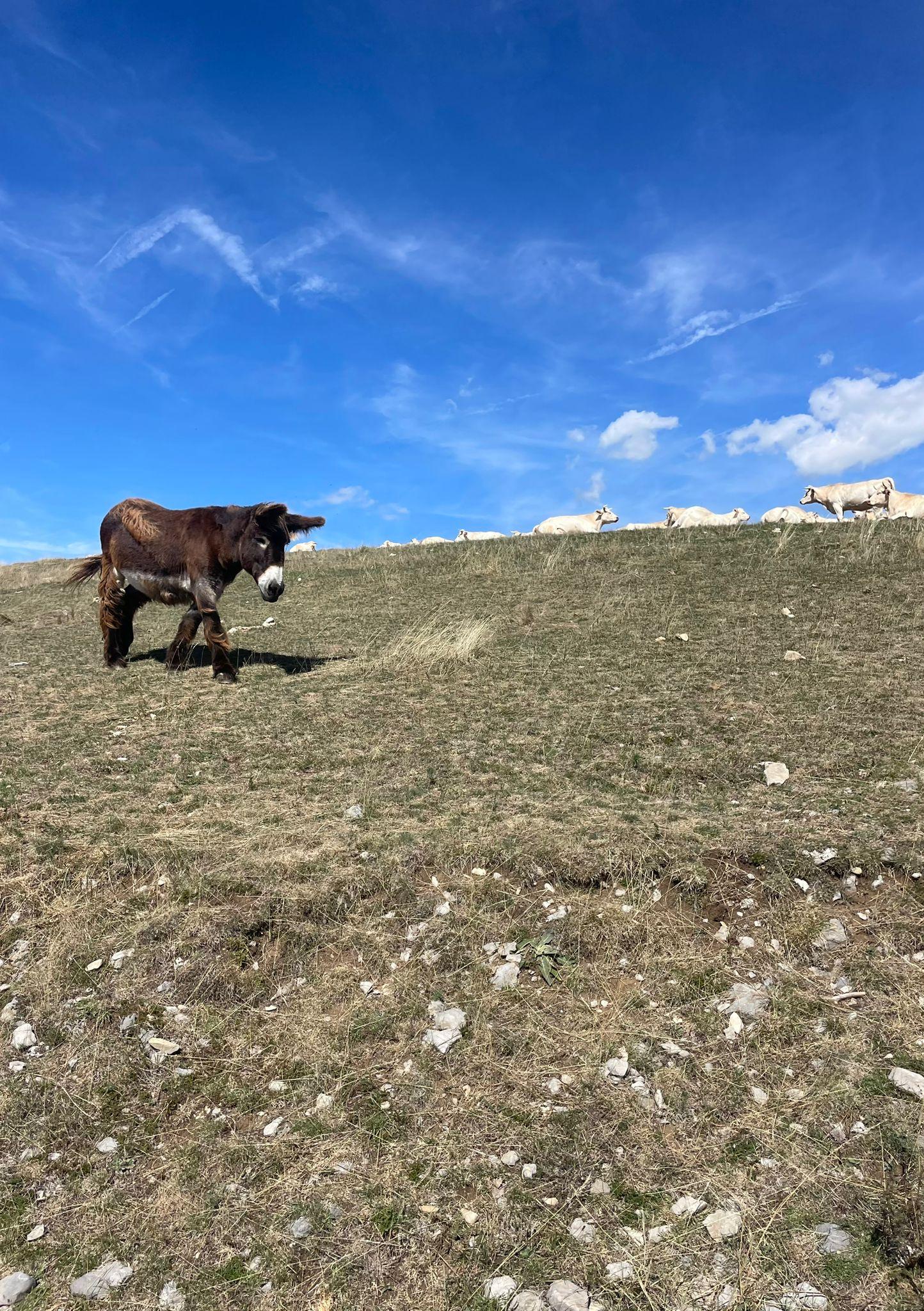 Notre sortie a eu lieu au plateau de Beuil les launes. Dès le début de la balade, l’ambiance était posée : vaches et ânes paisibles dans un superbe pâturage. Une belle entrée en la matière pour le groupe qui incluait une joelette.