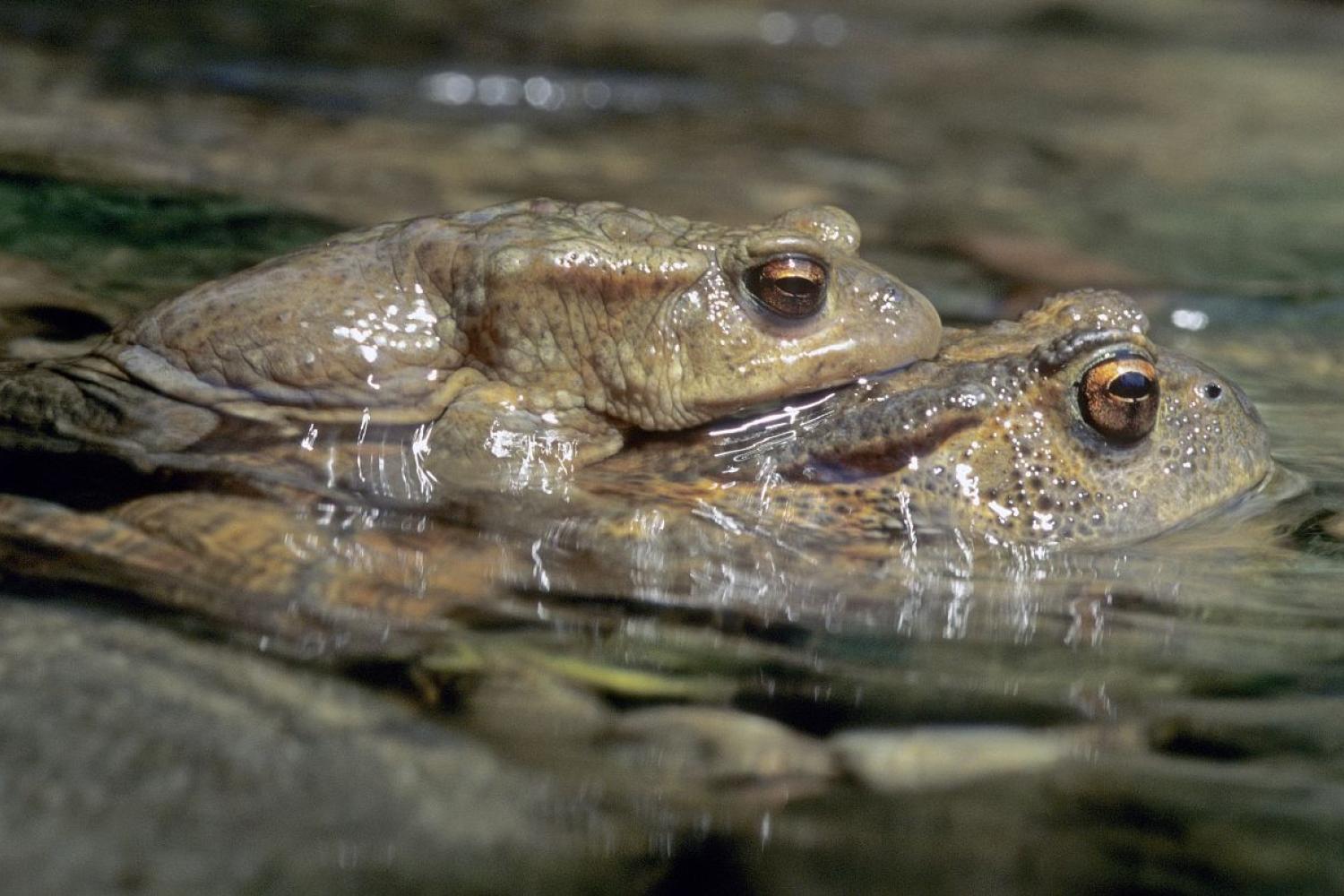 Dès le retour de quelques précipitations crépusculaires, en ce début de printemps, les crapauds communs sortent de leurs abris hivernaux pour se reproduire.