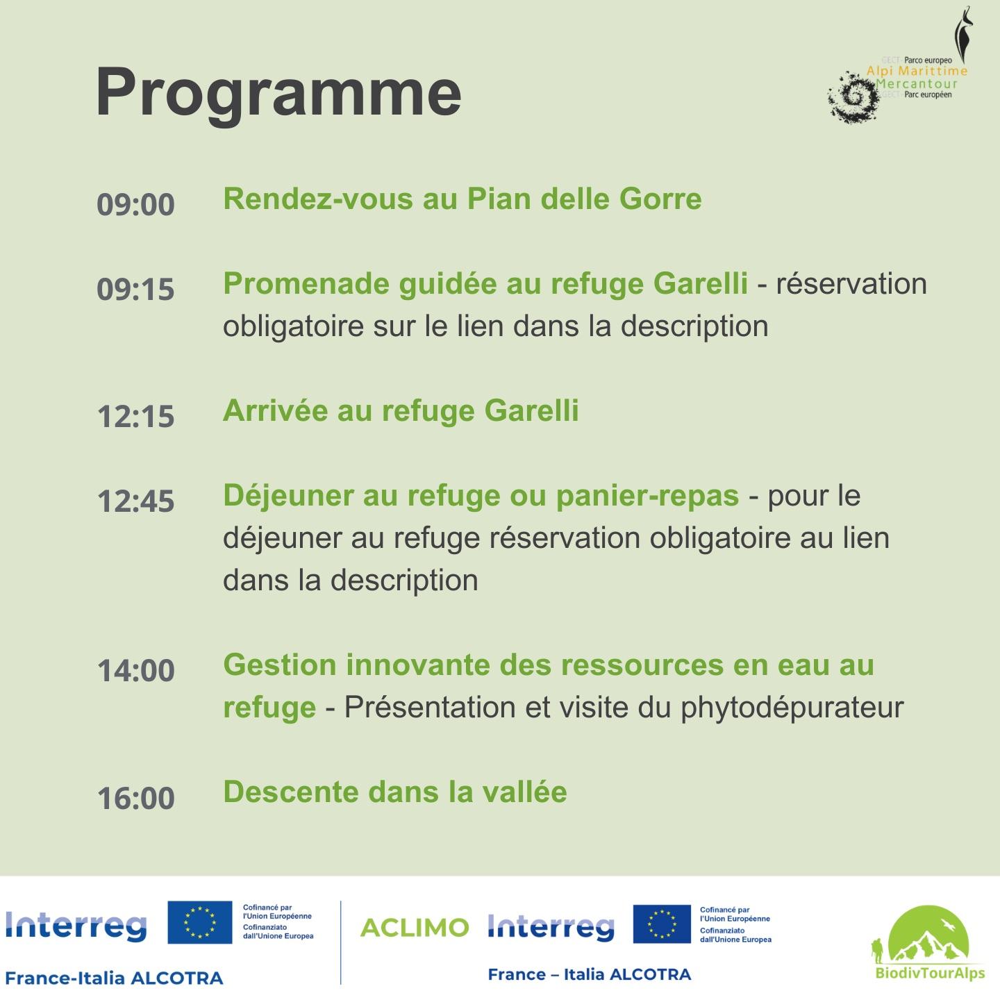 Il s’agira d'une randonnée accompagnée dans le parc naturel du Marguareis en Italie, de Chiusa di Pesio (Coni/Cuneo) au refuge Garelli. Ce refuge est équipé d'un système innovant dephytoépuration, dont le fonctionnement et la conception seront présentés, y compris le choix minutieux de plantes adaptées à l'environnement alpin.
